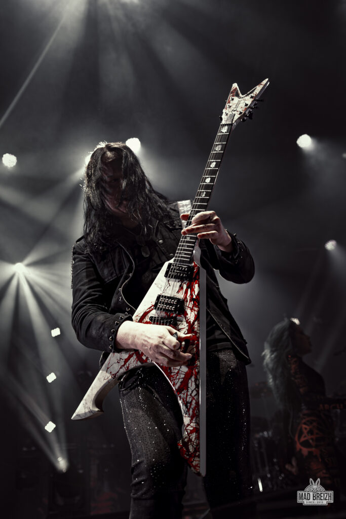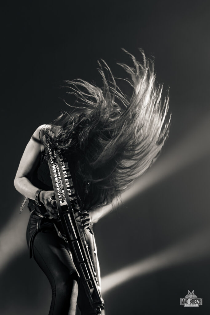 Enfin arrive le quintet suédois Arch Enemy sous un tonnerre d’applaudissements pour son European Blood Dynasty Tour, promouvant son dernier album Blood Dynasty sorti en mars 2025. Dès les premières notes de Bark at the Moon, le public a été transporté dans un univers mêlant intensité, technique et puissance.