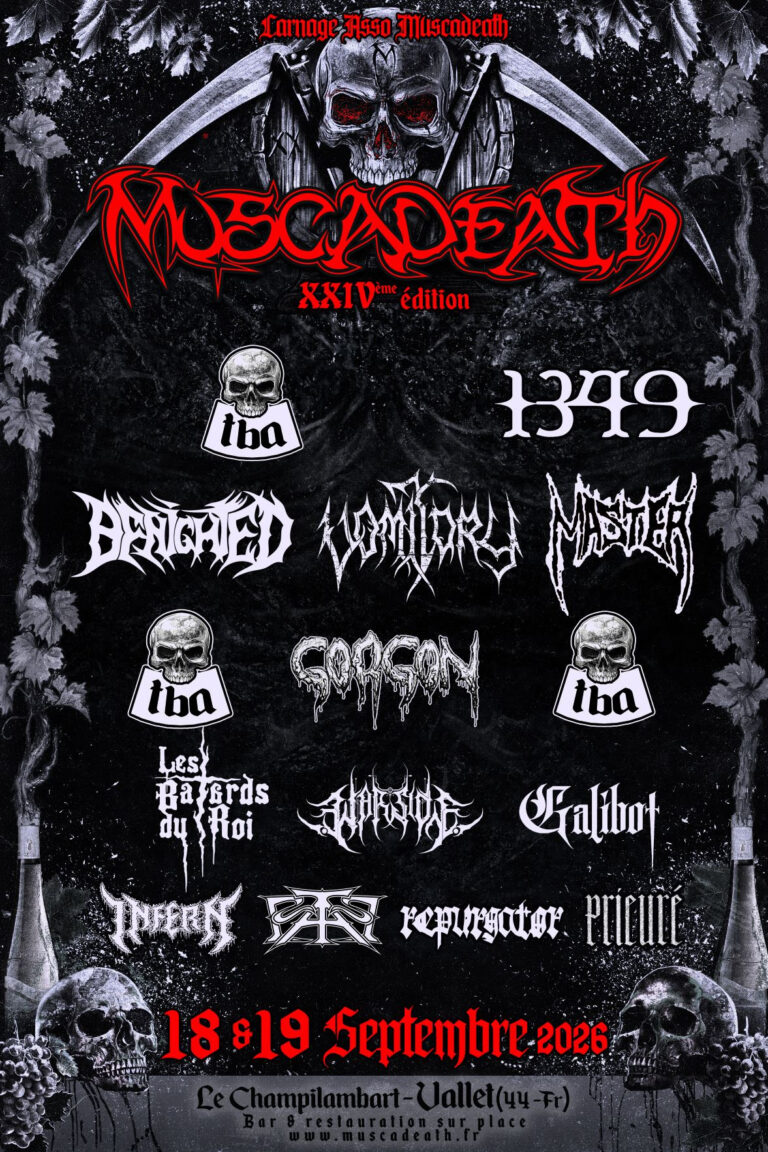 🤘 MUSCADEATH 2026 : Les vendanges extrêmes reviennent! 18-19 septembre à Vallet. Benighted, Loudblast, Master… Prépare tes cervicales! #Muscadeath #Metal #MadBreizh #FestivalMetal #Vallet